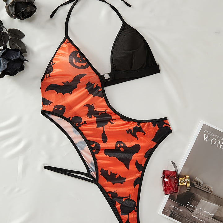 Atrévete a deslumbrar en esta temporada con este body de temática Halloween, diseñado para resaltar tu silueta con un toque atrevido y festivo.